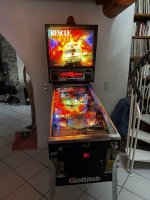 Rescue 911 de Gottlieb, comme indiqué plus haut, quelques travaux entrepris par l’ex proprio, j’ai rapatrié la bête fronton baissé après avoir retiré la backglass et calé avec une couverture